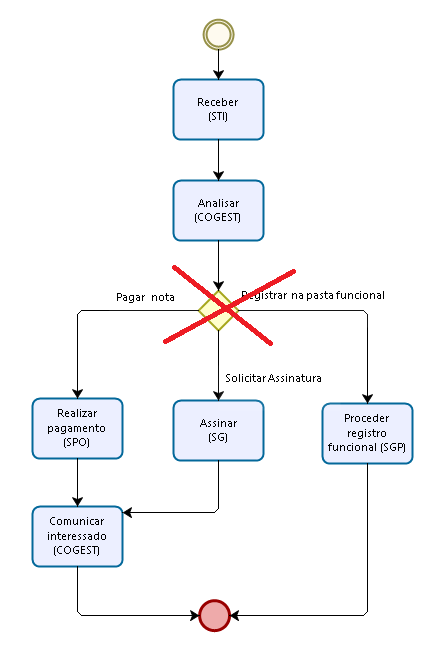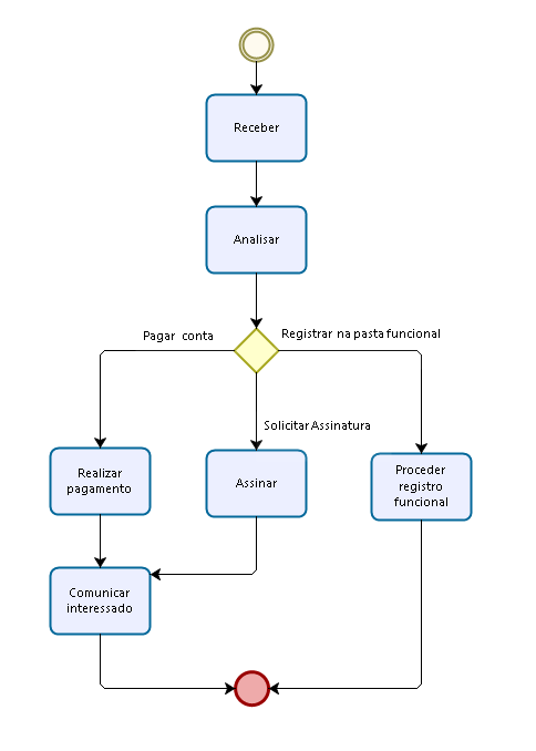 | Decisão | Define a próxima tarefa a ser executada com base em regra pré-definida. | Automática, após aplicação da regra pelo sistema |