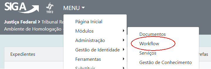 1 – Entre no módulo de workflow (Menu / Módulos / Workflow):