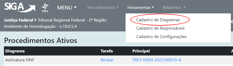 2 – Selecione a opção Cadastro de diagramas (Ferramentas / Cadastro de diagramas):