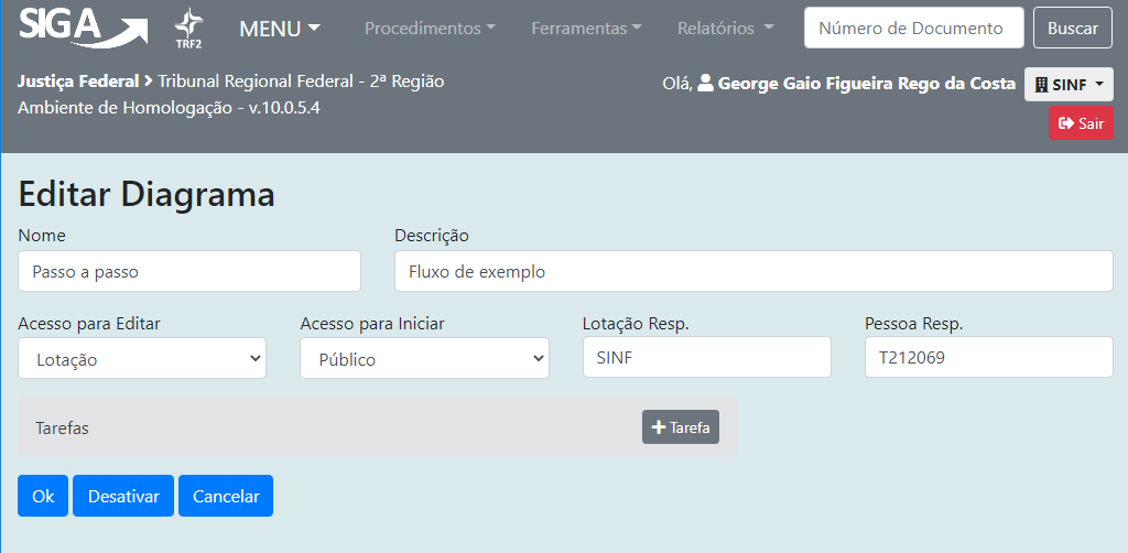 Acesso para editar: Define quem poderá realizar mudanças no diagrama. Já vem pré-defindo como todas as pessoas da lotação responsável pelo diagrama. Altere se necessário;