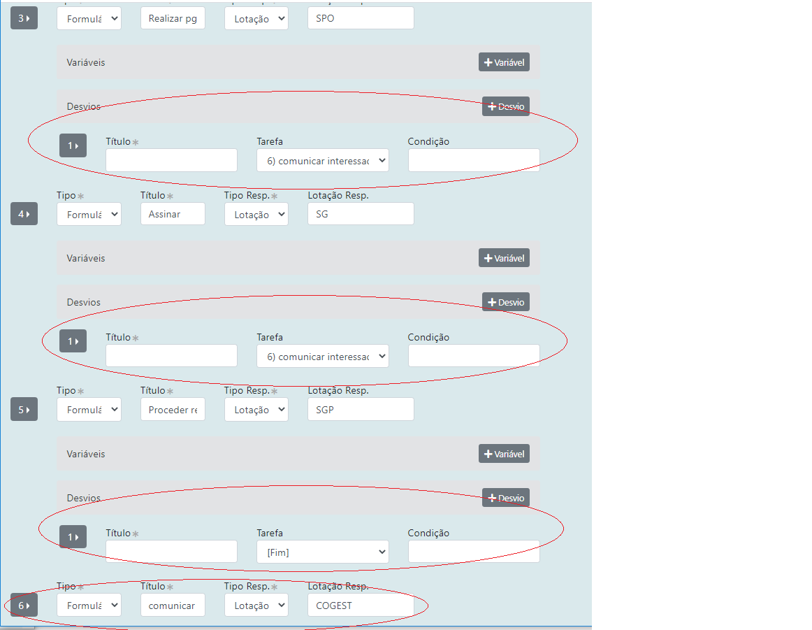 | Procedimento: Lotação do Titular | Quando a tarefa deve ser executada pela lotação da pessoa que iniciou o fluxo. |