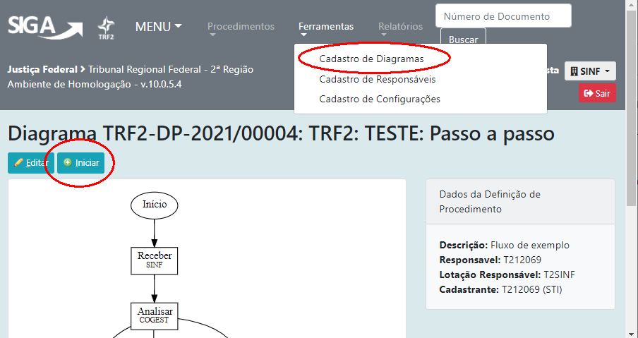 Lotação responsável: Lotação da unidade responsável pelo diagrama; Pessoa Responsável: Lotação da pessoa responsável pelo diagrama.