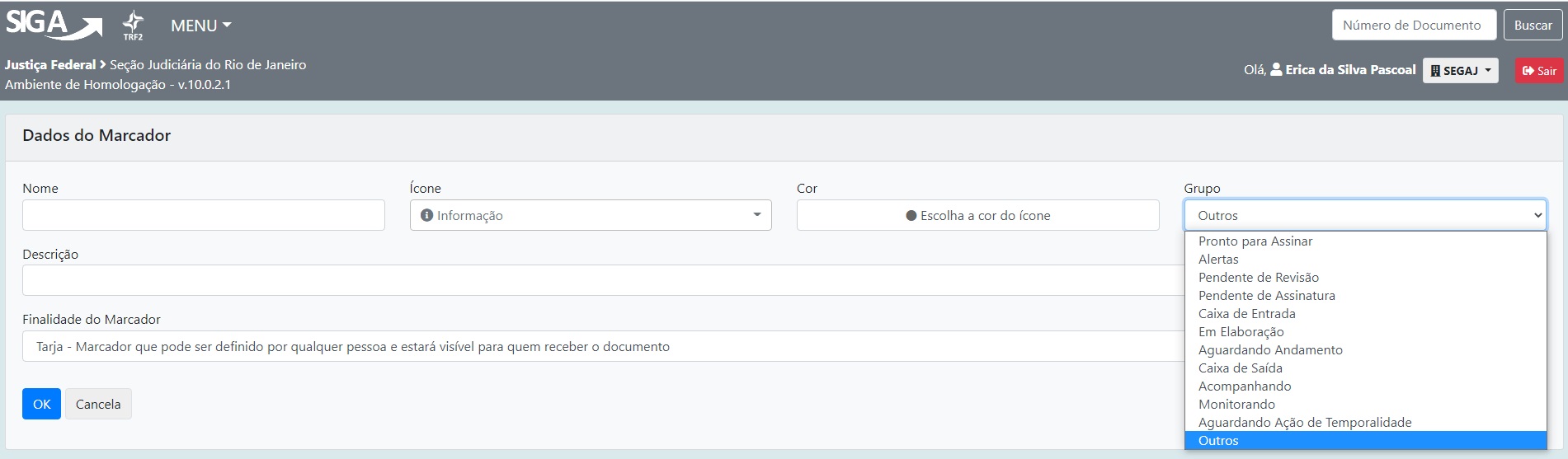 1.8 - Após preenchidos todos os campos, clique em Ok para finalizar o cadastramento do marcador